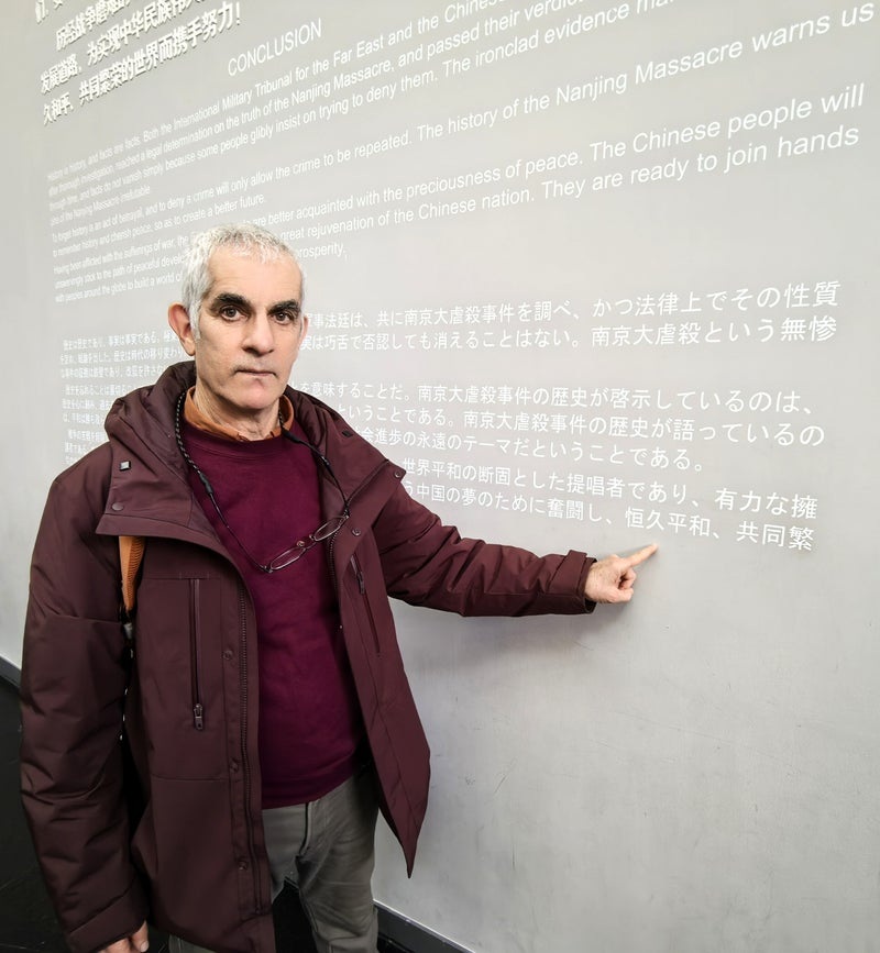 5日間の短い上海・南京滞在で、メインは南京大虐殺記念館の参観だった。ダニーさんは何人もの親族をユダヤ人ホロコーストで失っており、南京大虐殺は他人事ではない。参観した16日は、南京大虐殺の国家公祭が行われた12月13日の直後である。早朝から市民が列を作って入館を待っているのは、南京の被害者を悼み、歴史を忘れないでいようとする姿勢の表れだろう。