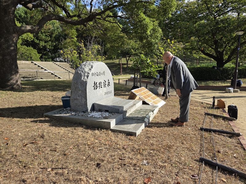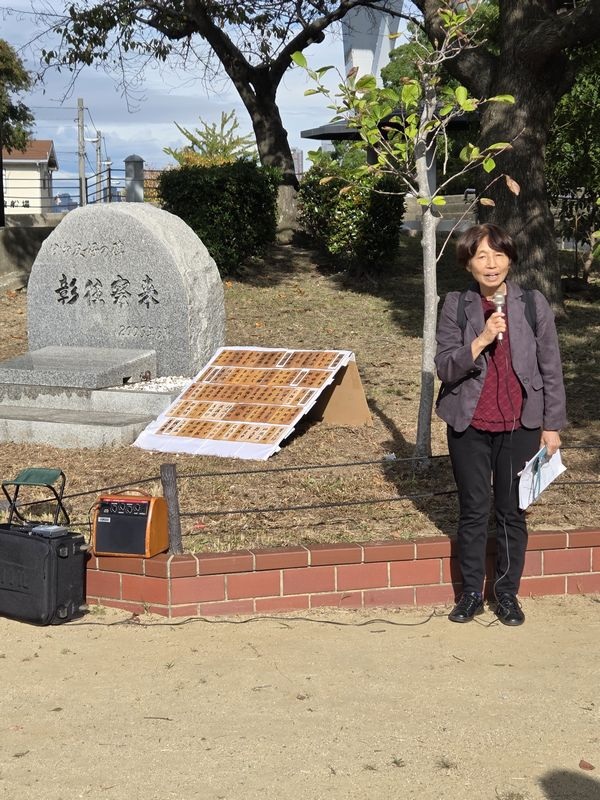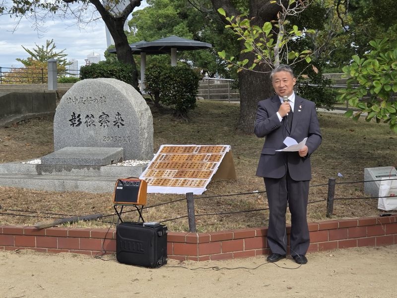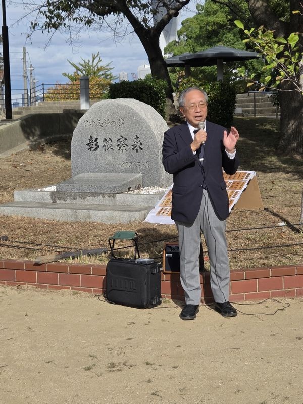 10/11(土)、大阪港天保山公園にある《日中友好“彰往察来”追悼記念碑》前で第28回(中国人強制連行犠牲者)追悼会が開催された。
