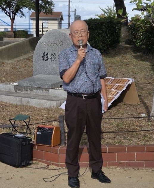 冠木代表は、先日、北京で開催された抗日戦争世界反ファシズム戦争勝利80周年記念に鳩山元総理が出席されたことを高く評価し、加害責任をスルーし軍拡に走ることを厳しく批判され、中国との戦争が準備されていると警鐘を鳴らされ、日中友好の大切さを訴えられた。日本軍国主義による中国侵略戦争の加害責任を常に確認反省し、2度と起こしてはならない意思を強固にしようと呼びかけられた。