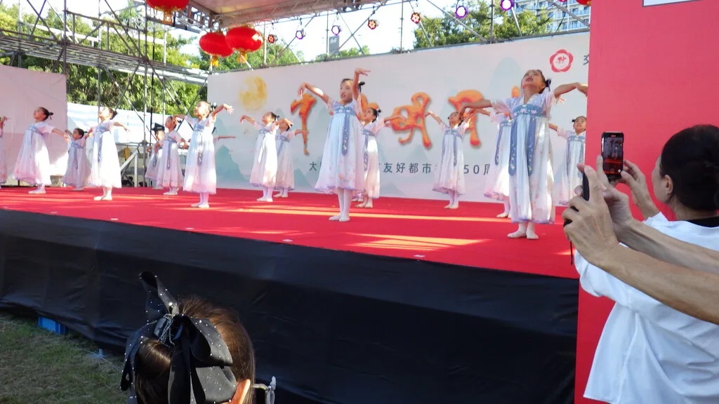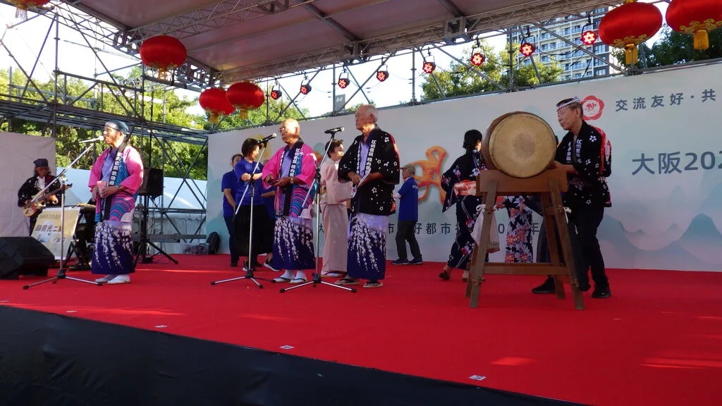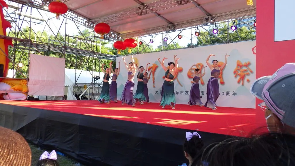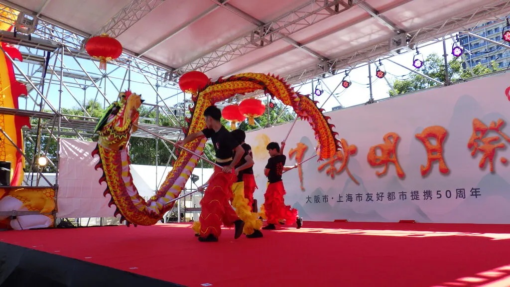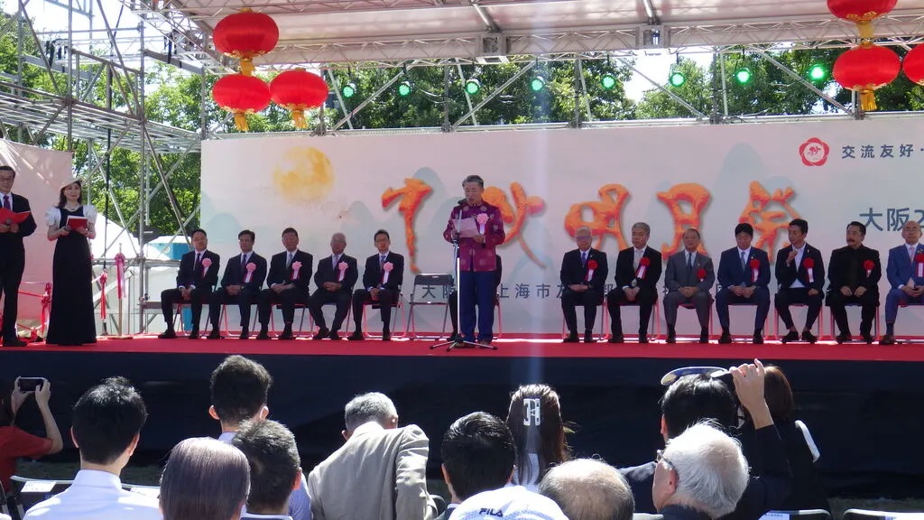 「交流友好・共建和諧」のスローガンのもと、大阪市・上海市友好都市50周年を記念し、この日、難波宮旧跡は、華麗な舞台と美食が集う日中友好の都となった。