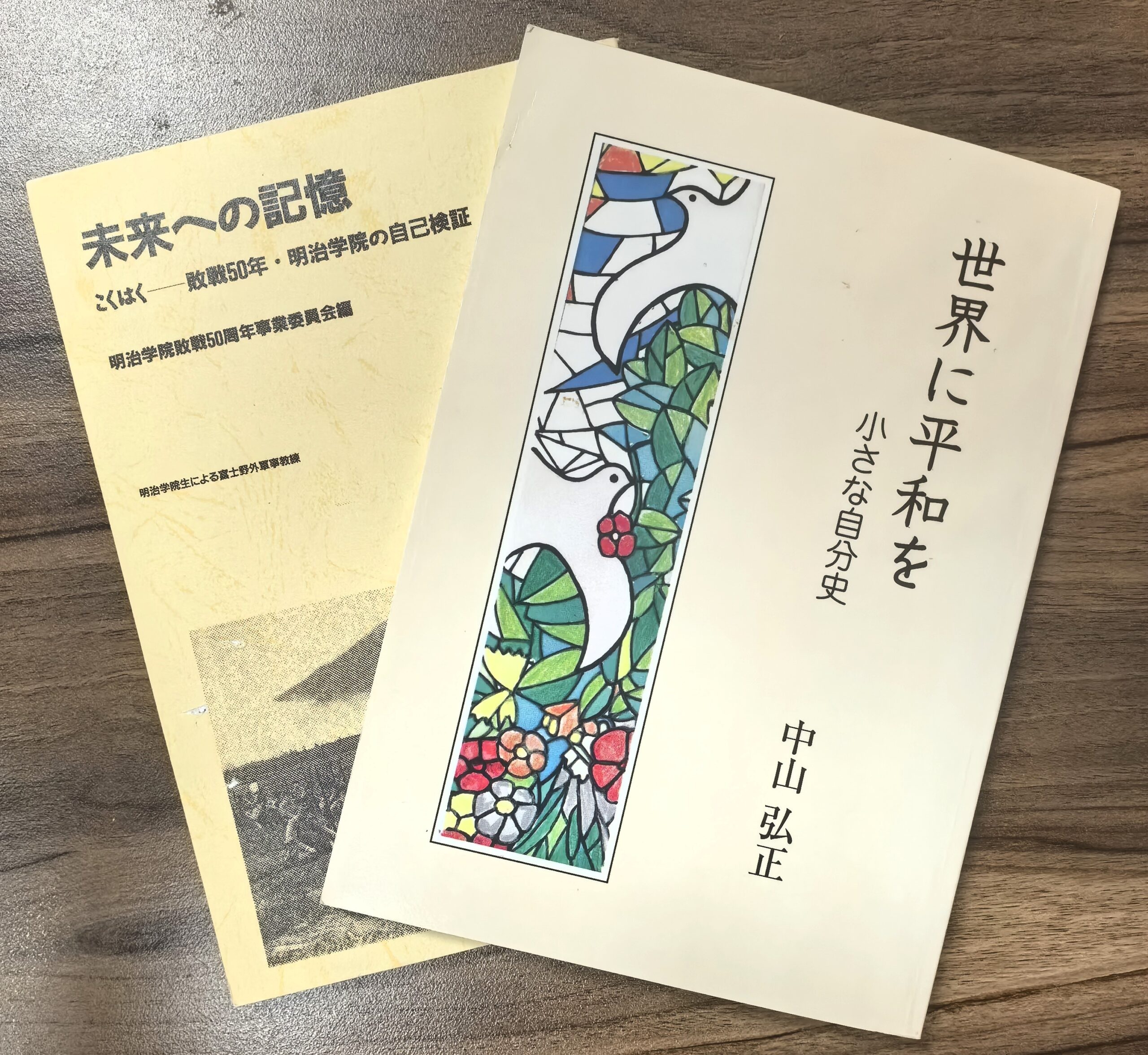 このように振り返ると、さぞ厳格で近寄りがたい宗教者を想像するかもしれない。靖国神社の国営化に反対する運動にも長年取り組んできた経済学者といえば、余計にそうだろう。ただ、実際の中山は驚くほど穏やかな人柄で、人を包み込む独特の雰囲気を持っていた。数年前、孫にも読めるようにと『世界に平和を:小さな自分史』をまとめた(写真2)。信仰者であり大学人として日常を丁寧に生きる姿と、平和を壊す動きを見過ごさない市民の顔が交互に現れる。日本社会が向きあおうとしない戦争責任に迫る回路は、政治だけでなく信仰、学校、家族、暮らしなど複数あることを教えてくれる。