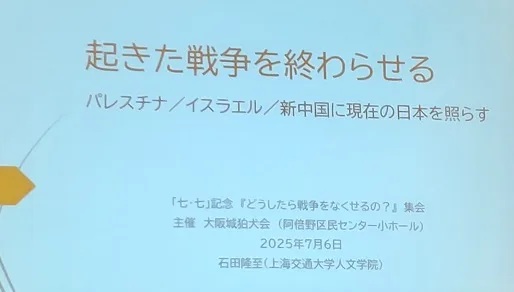 7/6、“『どうしたら戦争をなくせるの?』集会”が、阿倍野区民センター小ホールで開催された。