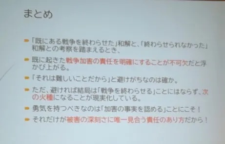 ダニー・ネフセタイさんの講演、池辺幸恵平和コンサート、石田隆至さんの講演の後、会場全体で「どうしたら戦争をなくせるの?」をめっぐて、活発なディスカッションが行なわれた。それぞれの立場考えから様々な意見が述べられた。いずれの意見からも反戦平和への共通の熱い想いが伝わる活気あふれるディスカッションとなった。