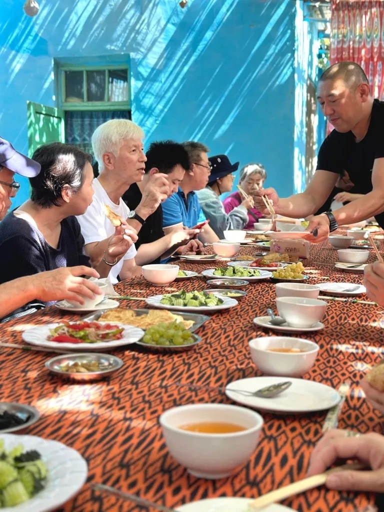 地元農家での昼食(景色に入り込むツアー参加者達)